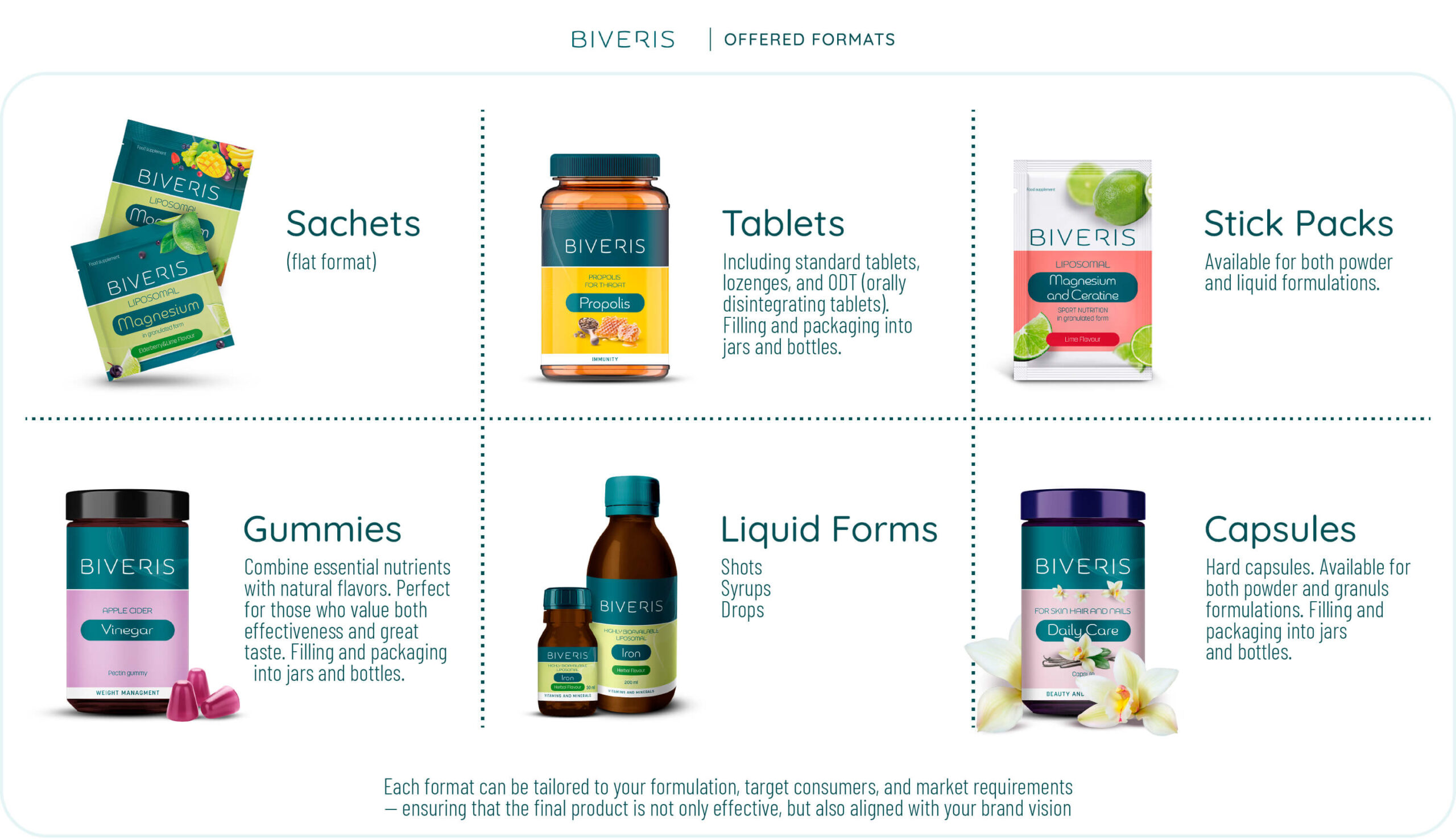 We transform your dietary supplement concepts into market-ready products thanks to our modern, streamlined approach.